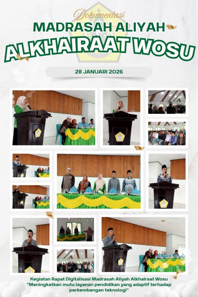 MADRASAH ALIYAH (MA) ALKHAIRAAT WOSU ONLINE- Madrasah Aliyah Alkhairaat Wosu menggelar acara penting bertajuk Digitalisasi Madrasah yang dirangkaikan dengan Pemilihan Komite periode baru. Acara yang dipandu oleh Ustaz Affan, S.Pd.I, M.Pd, Gr ini dibuka dengan menyanyikan lagu Indonesia Raya dan Mars Alkhairaat, dilanjutkan pembacaan doa oleh Ustaz Dr. Mohamad Subli, Lc., M.A.